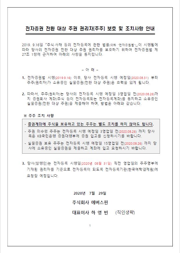 전자증권 전환 대상 주권 권리자(주주) 보호 및 조치사항 안내